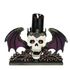 2026 Katherine's Collection Halloween décor. Kiss of Death Winged Skull Pillar candle holder. 13.5" x 6.5" x 12" Candle included. Preorder item will arrive July or Aug maybe sooner. Pick the month you want it shipped or choose when available if will take early. We will not charge your credit card until we are shipping. PAYPAL payments will be CHARGED NOW as they do not allow delayed charging.