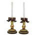 Katherine's Collection Christmas. Gold leaf resin candlestick holders. 5" x 16.5" Preorder item will be available in Sept or Oct. We will not charge your credit card until we are ready to ship. If you use Paypal we will have to charge you now as it does not allow for delayed charging.