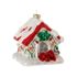 | Raz imports pretty doghouse Christmas ornament decorater with holiday lights and red bow. 3.5” made of glass.